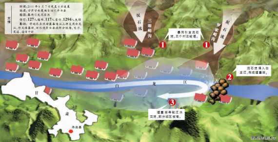 事件:泥石流沖進(jìn)縣城,并形成堰塞湖