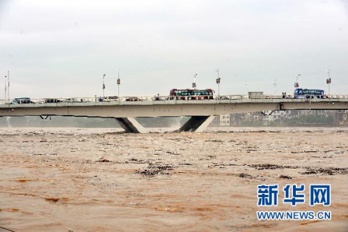 6月17日,洪水通過(guò)漓江大橋。新華社記者 陳瑞華 攝
