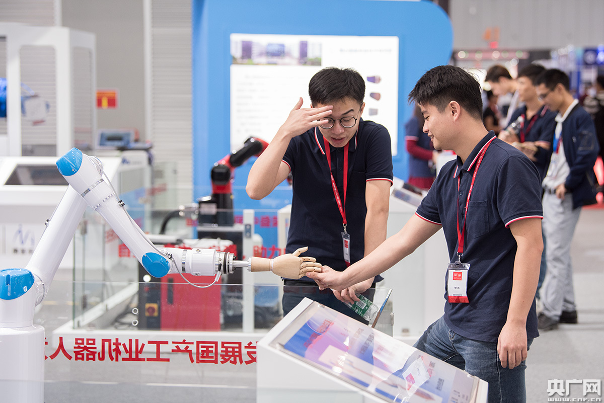 展館內展示的可以與人握手的“機器人”。(央廣網(wǎng)記者 官文清 攝)