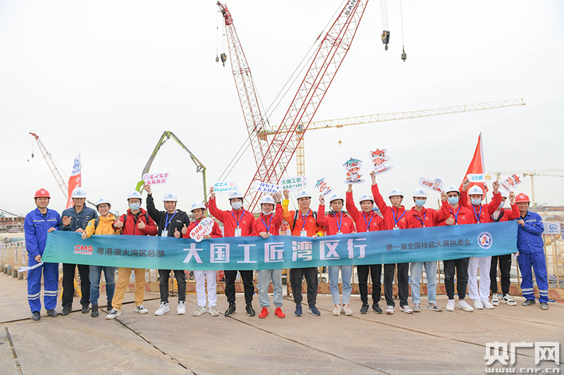 這是由中央廣播電視總臺粵港澳大灣區總部和第一屆全國技能大賽執委會(huì )共同主辦的“大國工匠灣區行”活動(dòng)之“大國工匠走進(jìn)超級工程”的其中一個(gè)場(chǎng)景。在為期三天的活動(dòng)中,來(lái)自電工、混凝土建筑、焊接、機電一體化等比賽項目的多位“技能?chē)帧庇媚_步丈量“超級工程”,感受大灣區發(fā)展速度。