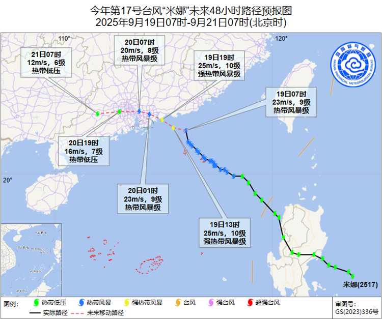 今年第17號臺風(fēng)“米娜”將于19日晚在廣東汕尾至臺山一帶沿海登陸