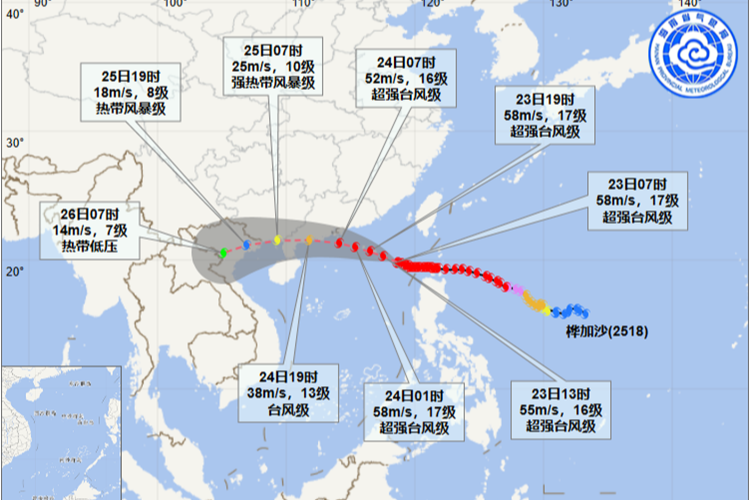 “樺加沙”將在廣東深圳到徐聞一帶沿海登陸 9月24日—25日海南島將有強風(fēng)雨天氣