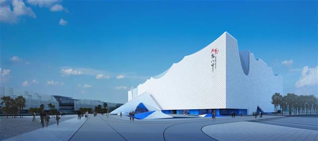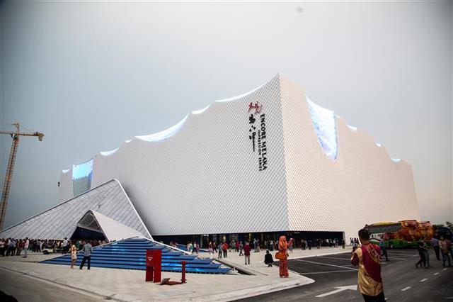 馬六甲印象歌劇院是馬六甲最大單體公共建筑,可同時(shí)容納2000名觀(guān)眾。主體共6層,結構凈高33.6米,總建筑面積68796.5平方米。中建三局項目執行經(jīng)理介紹,在項目早期概念設計中,建筑外形整體像一片翠綠的荷葉,細節部分也融入了中國陶瓷、絲綢、茶葉等諸多元素。在項目建設中,業(yè)主出于成本與工期的考慮,改變了整個(gè)建筑的外形,整體呈四方形,藍色的建筑外套白色的幕墻,簡(jiǎn)潔大方,對映著(zhù)馬六甲海峽的藍天白云,美輪美奐。