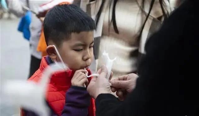 小朋友正在非遺匠人的指引下吹糖人。