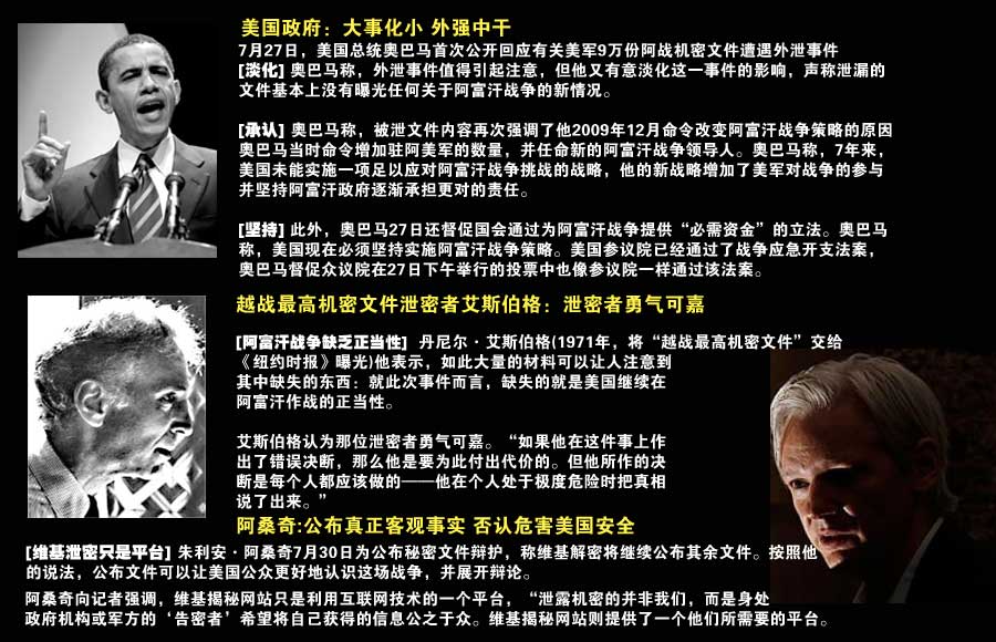 事發(fā):阿戰9萬(wàn)份情報曝光 系美軍史上最大泄密案之一 一家名為“維基解密”的美國網(wǎng)站7月25日公布了91000多份涉及美國在阿富汗戰爭中的秘密文件,這些秘密文件主要包括大量的美軍和北約部隊的作戰內容、行動(dòng)。