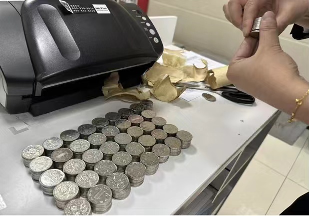 工行西寧城西支行營(yíng)業(yè)室在不影響其他客戶(hù)辦理業(yè)務(wù)的情況下,開(kāi)通了綠色服務(wù)通道,迅速組織人員開(kāi)展清點(diǎn)兌換工作。兩名工作人員分工協(xié)作,有序開(kāi)展硬幣兌換工作,經(jīng)過(guò)一個(gè)多小時(shí)清點(diǎn),總計為客戶(hù)兌換兩千余元硬幣。