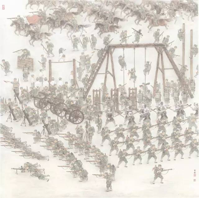2014年9月,油畫(huà)《突擊》入選第十二屆全國美術(shù)大展。(浙江美術(shù)館)