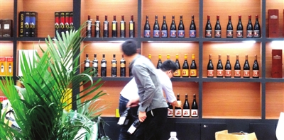 圖為部分展位開(kāi)始陳列酒品。本報記者 錢(qián)進(jìn) 攝