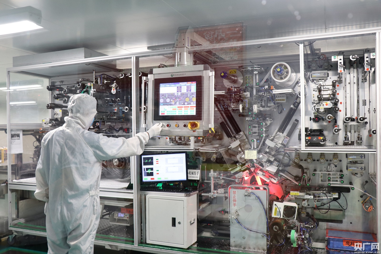 天津力神電池公司的鋰離子電池智能化車(chē)間(央廣網(wǎng)記者劉陽(yáng) 攝)