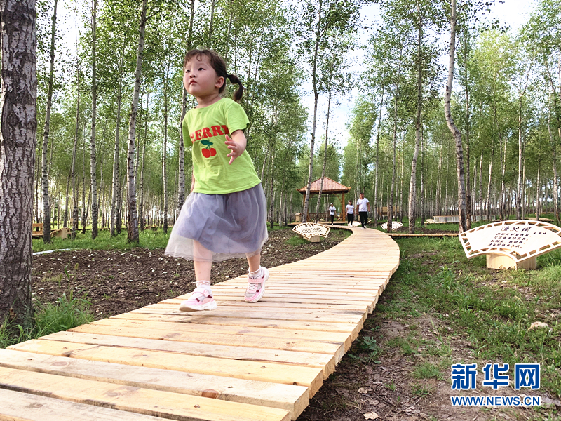 老百姓在扎賚特旗國家現代農業(yè)產(chǎn)業(yè)園內的公園觀(guān)光嬉戲。記者王靖 攝